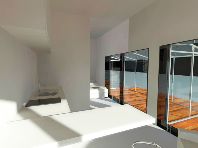 Basic2 har et åbent bade / soverum - en mulighed for at leve på en lidt anden måde og med udgang fra soverummet til glashuset - det kunne måske være man havde lyst til at sove under stjernerne i glashuset.
